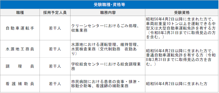 ※ 令和7年度に当市が実施した採用試験で不合格になられた職種は受験できません。