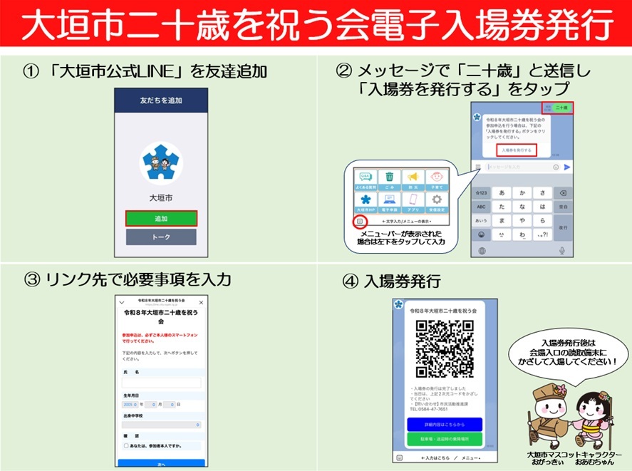・大垣市公式LINEの友達追加が必要です。