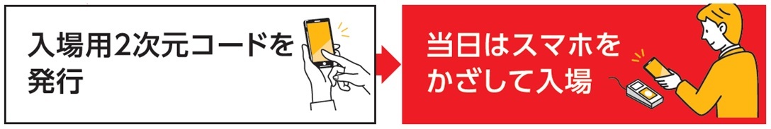 ・左の二次元コードから本人が電子入場券を事前発行をしてください。