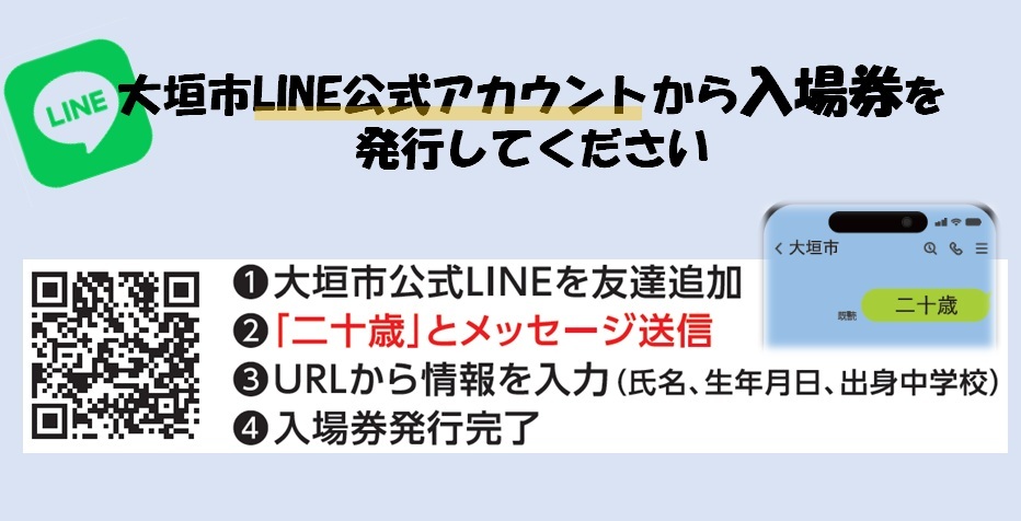 令和8年大垣市二十歳(はたち)を祝う会の当日入場につきまして、混雑緩和のため、電子受付を行います。