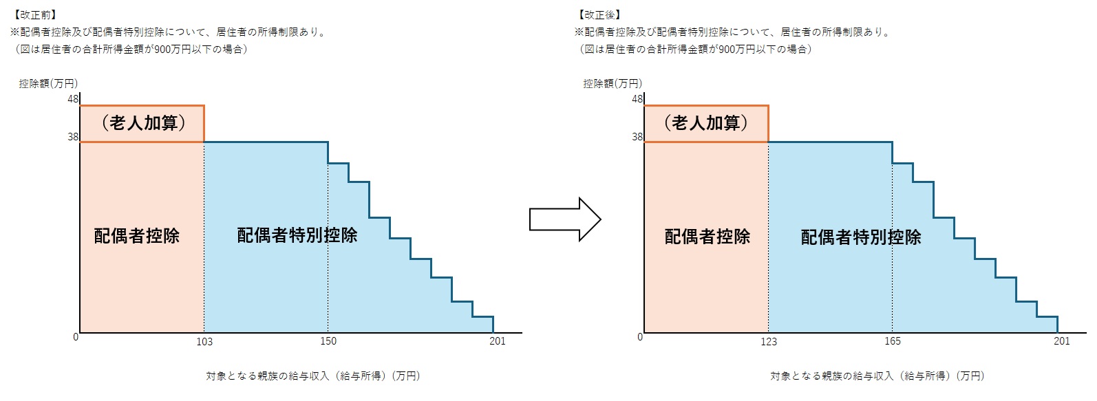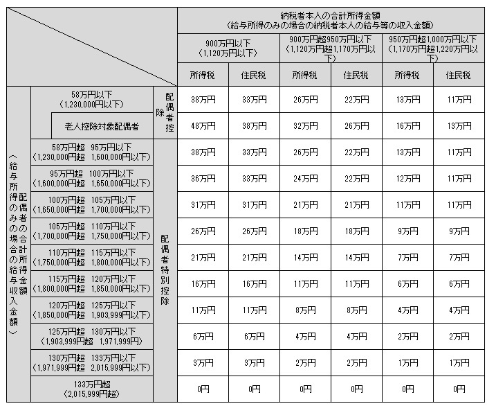【改正後の配偶者控除額及び配偶者特別控除額の一覧表】