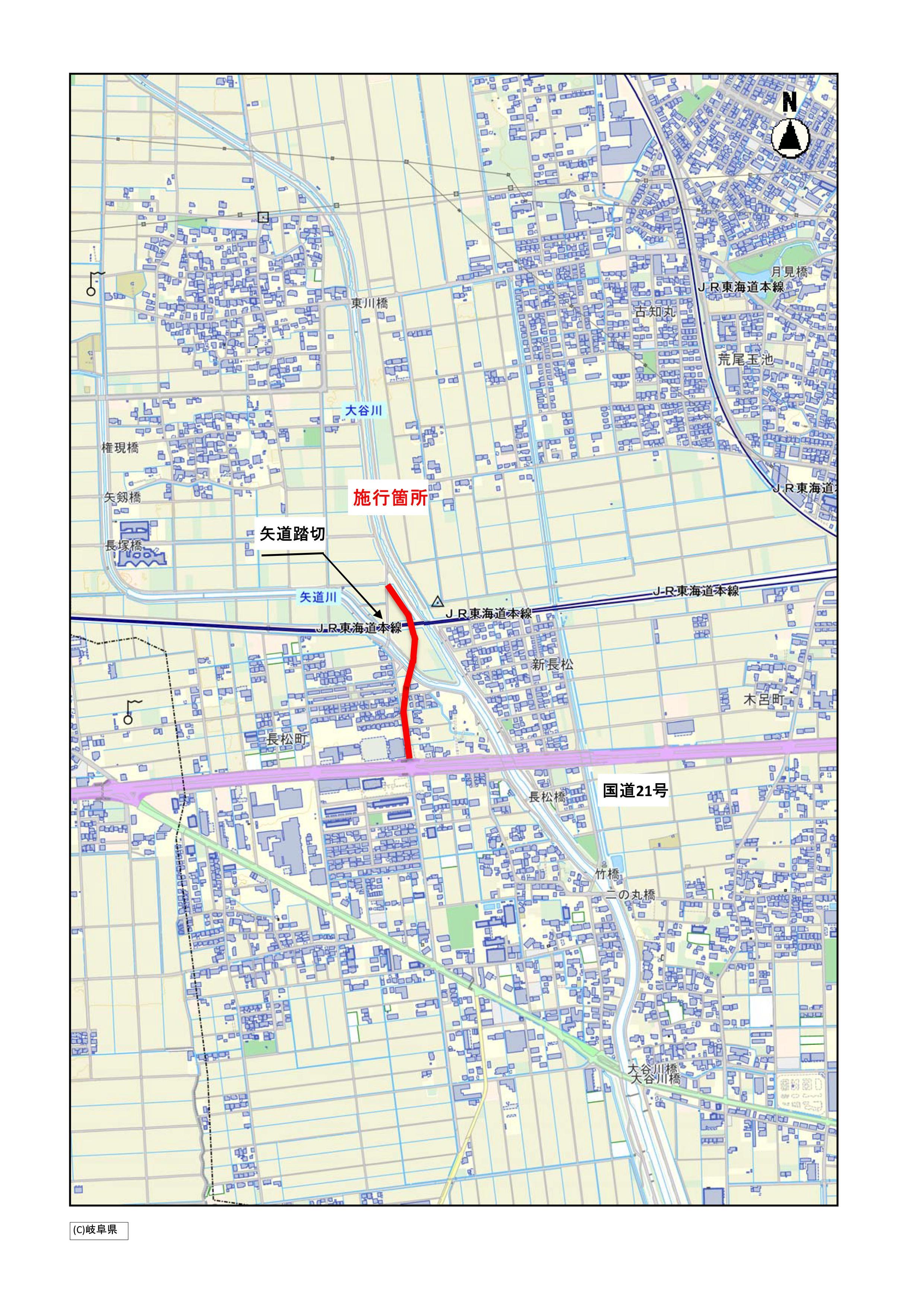 線路を横断する矢道踏切は現在幅約2.5mと狭いため、路線の移設に併せアンダーパス化し、幅13mの道路に改良するものです。