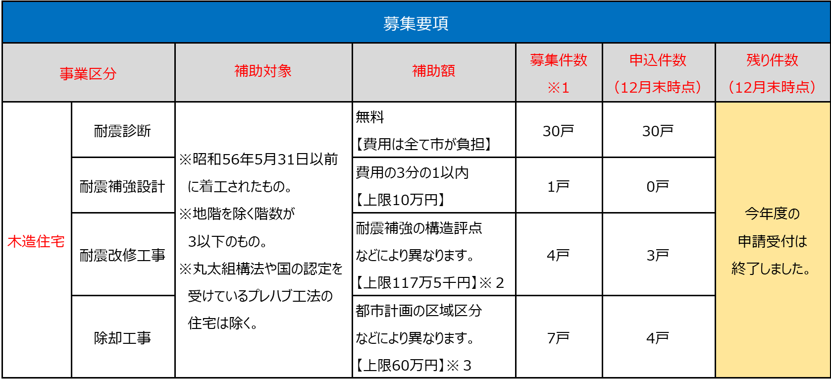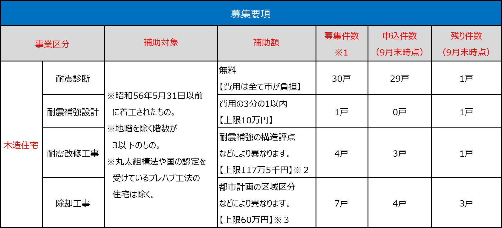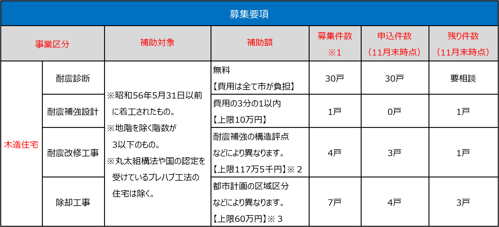 ※木造住宅の耐震補強設計、耐震改修工事、除却工事については、完了実績報告を令和8年1月末日までに行うことが条件です。