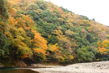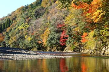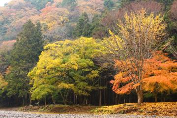 多良峡は上石津地域のまん中に位置し、「揖斐関ケ原養老国定公園」、「岐阜県の名水50選」、「飛騨・美濃紅葉33選」、「大垣市景観遺産」にも選ばれている渓谷です。途中の多良峡森林公園には「つり橋」が架けられており、遊歩道が整備されています。春には新緑の美しい山となり、夏には牧田川からの風で涼しさを感じられます。秋になると山は一斉に赤色に色づき、清流に映えるモミジなどの紅葉をより身近に楽しむことができます。その美しい紅葉は「一之瀬嵐山」ともいわれています。
