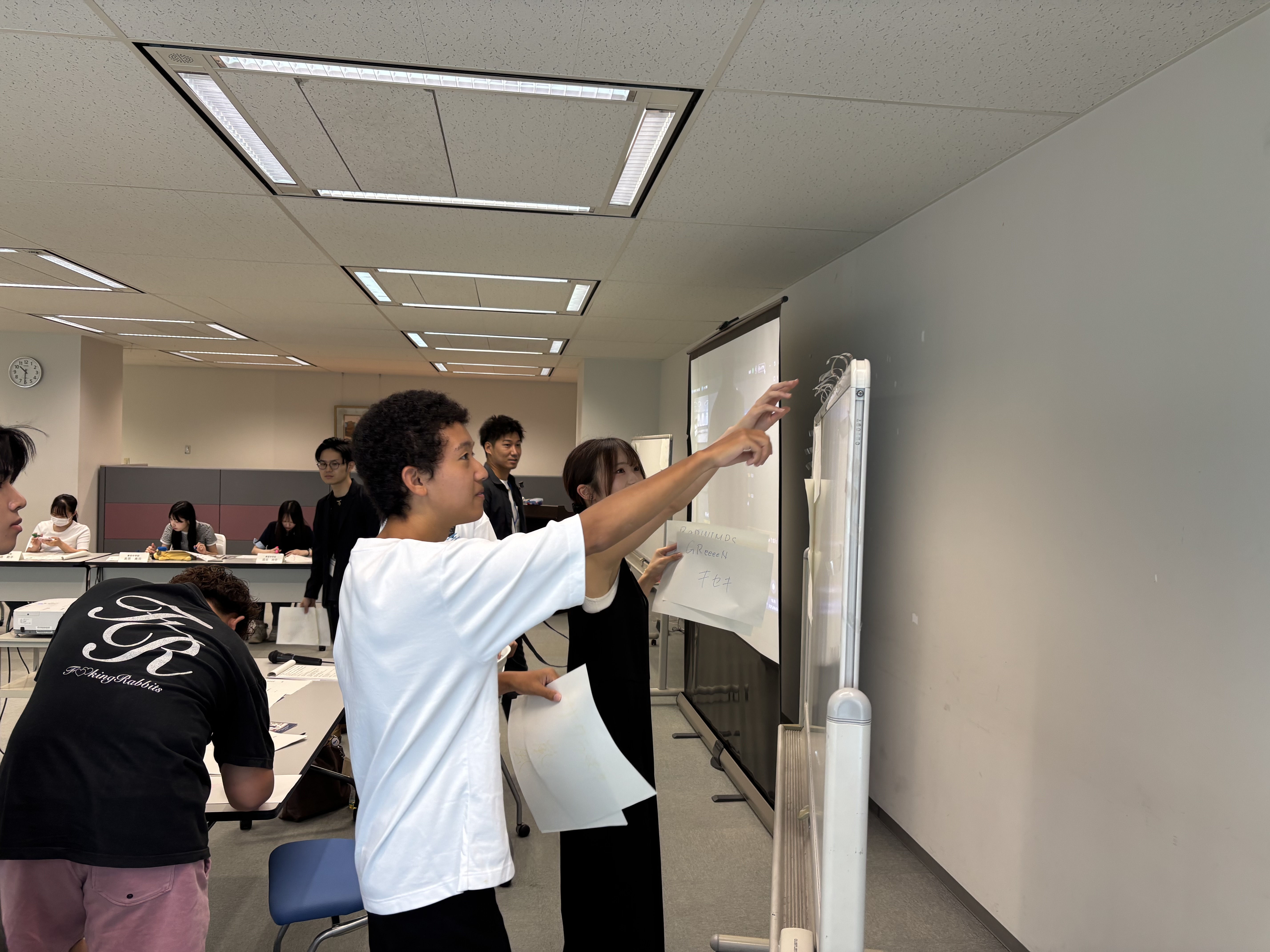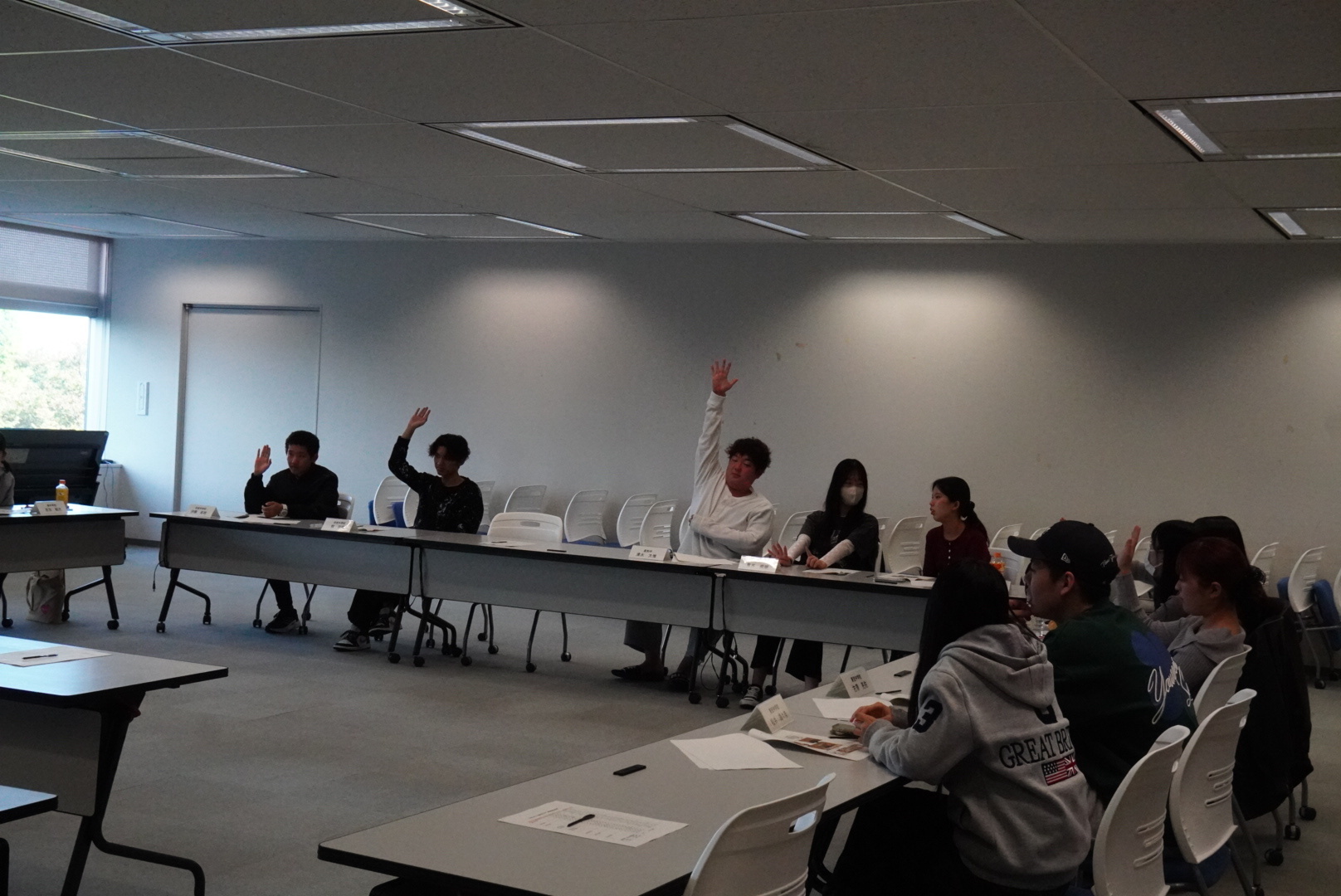 今回は、式典内で流す映像に使用する挿入曲、式典開始前のBGMについて話し合いました。話し合いの中で、両親や恩師への感謝を綴った曲や懐かしの曲など、多くの楽曲がBGMの候補にあがり、その中から運営委員の多数決により決定しました。(写真=候補曲を選ぶ様子)その後、映像制作担当者等の役割について確認。積極的な立候補により役割分担を決めることができ、「自分たちでより良い式典を作り上げていきたい」という姿が印象的でした。