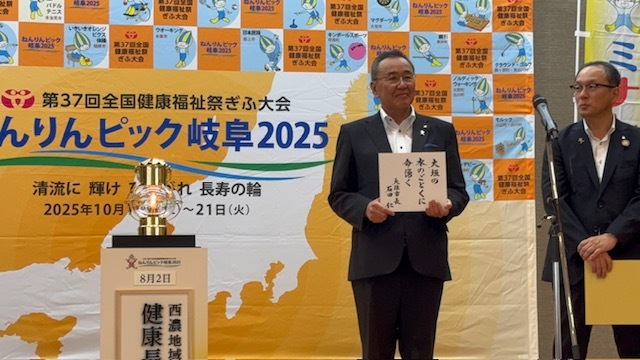 キックオフセレモニーでは、大垣市長が、大会を契機に、市民が健康長寿であるようにとの思いを込めた健康長寿メッセージを披露しました。
