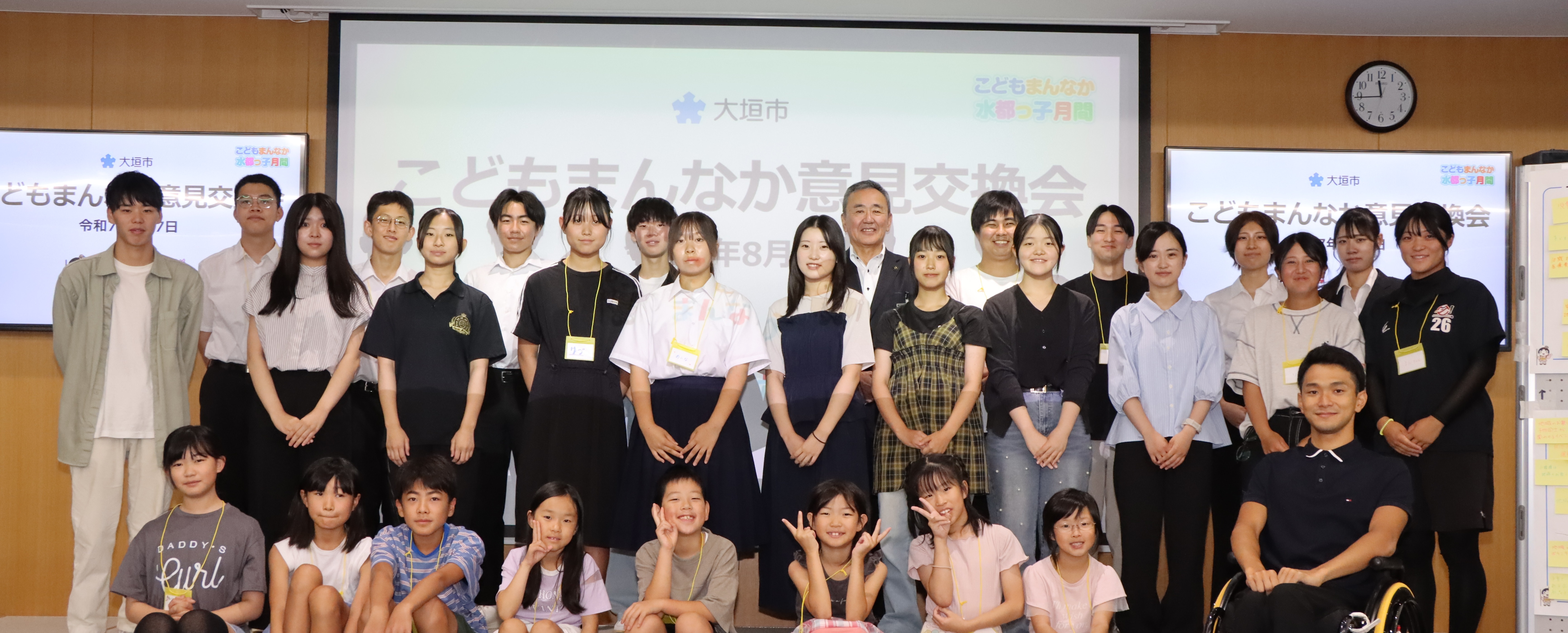 大垣市では、「こどもまんなかのまちづくり」を推進するため、令和7年4月に「大垣市こども未来条例」を施行し、こどもの意見を聴くことや子どもの意見表明の場を設け、子どもに係る施策及びまちづくりにその声を生かすことを明確化しました。子ども・若者の意見を聴き、その意見を子ども施策に反映させるため、「こどもまんなか意見交換会」を開催しました。