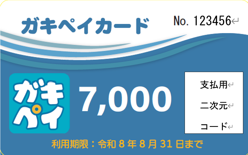 7,000円分の「ガキペイカード」(1人につき1枚)