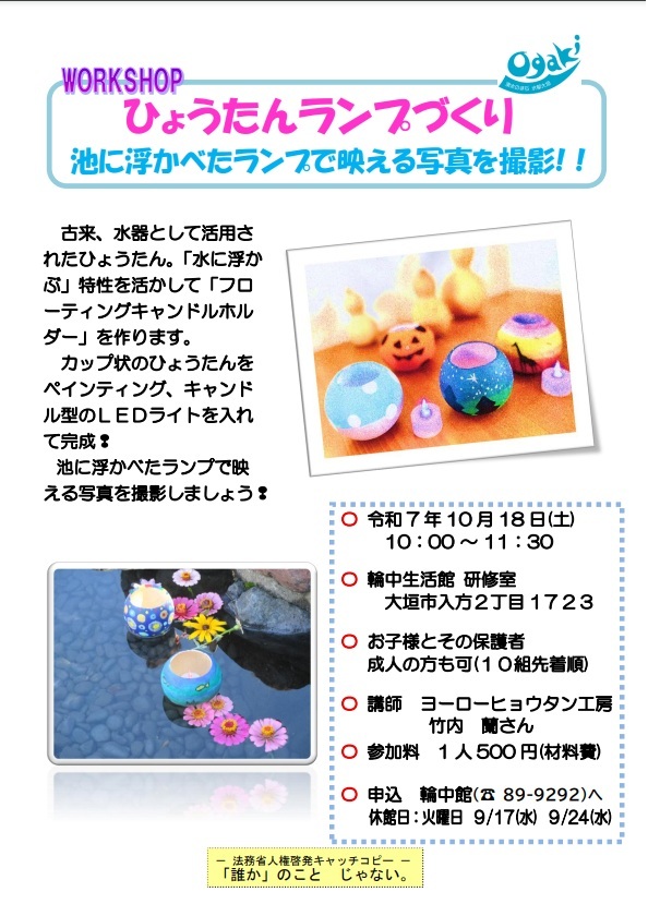 輪中地域の典型的な地主建築、市重要有形民俗文化財 旧名和邸(輪中生活館)で、水器として使われていたひょうたんの「フローティングキャンドルホルダー」を作ってみませんか。