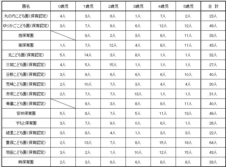 ※ 公立認定こども園(保育認定)の3歳児以上は、教育認定(幼稚園部)の申込状況により、受入可能人数が変動することがあります。