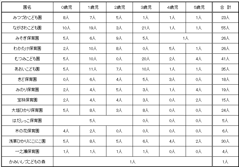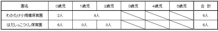 令和8年度の保育園・認定こども園(保育認定)・小規模保育事業所の新規受入可能人数は次のとおりです。