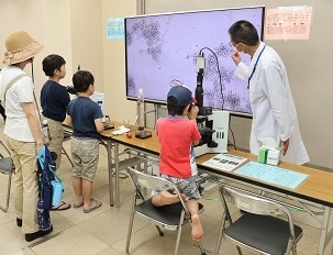実験教室、微生物の観察、巨大地下道たんけん、下水道缶バッジ、下水道に関する展示、炭化肥料の配布、塩ビ管水てっぽう、マンホールカードの配布 など