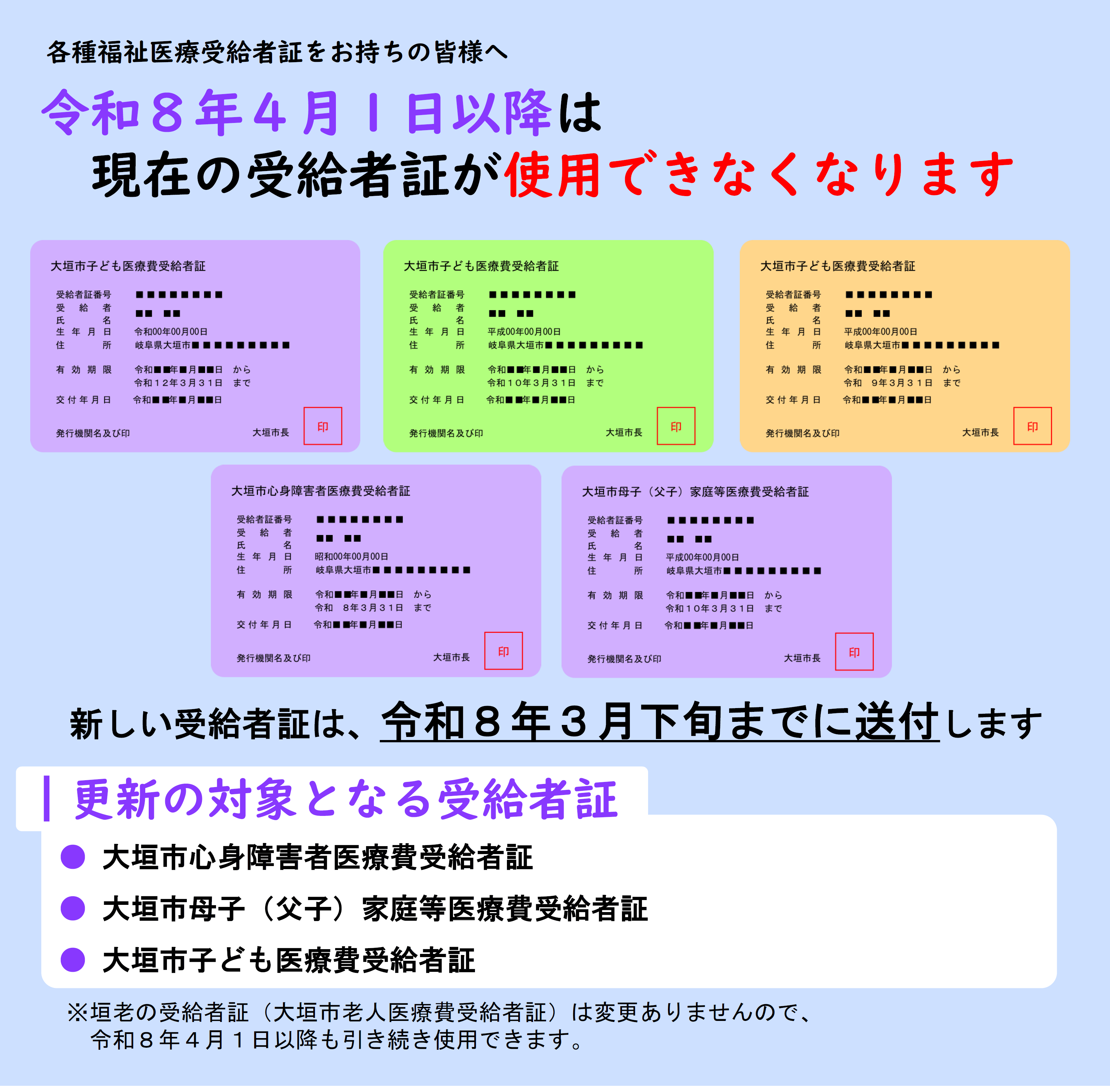 ※垣老の受給者証(大垣市老人医療費受給者証)は変更がありませんので、令和8年4月1日以降も現在の受給者証を引き続き使用できます。