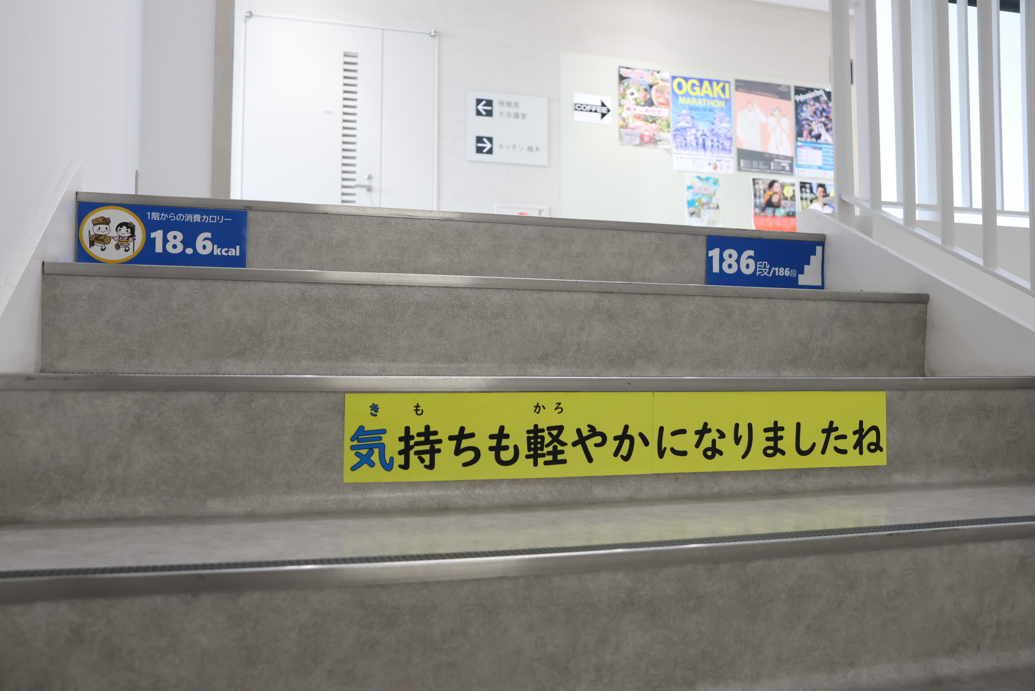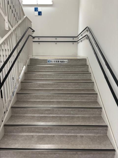 市役所本庁舎、保健センターの階段にメッセージを設置しました!