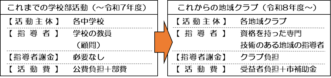 学校部活動の地域クラブ活動への展開で変わる主な変更点