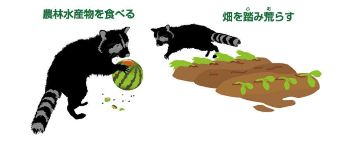 外来生物の中には、畑を荒らしたり、漁業の対象となる生物を捕食したり、危害を加えたりするものもいます。