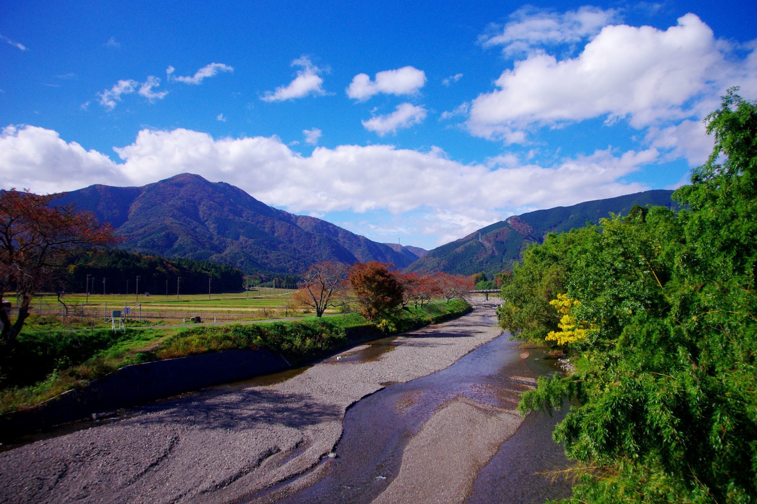 烏帽子岳と牧田川(大垣市上石津町時地区)